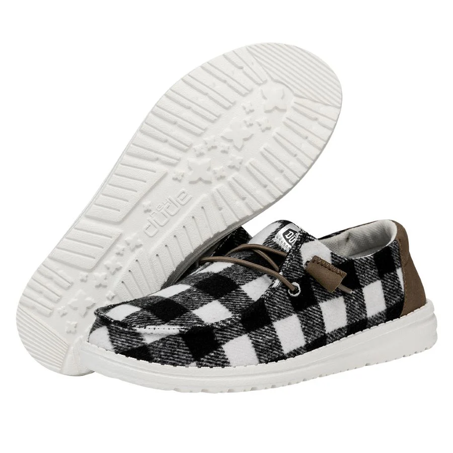 The Wendy Buffalo plaid is coming in *crisp*. Our most popular HEYDUDE™ moc gets an update with iconic buffalo-plaid prints in fresh new hues. A natural heel pop expands your outfit-pairing horizons. A cushioning foam insole and lightweight, flexible outsole combine for “aaahs.” Just add elastic laces for ultimate slip-on ease.